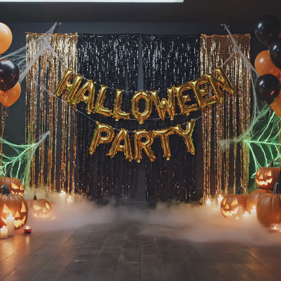 • Black and Orange Foil Balloon Banner – “HALLOWEEN PARTY”