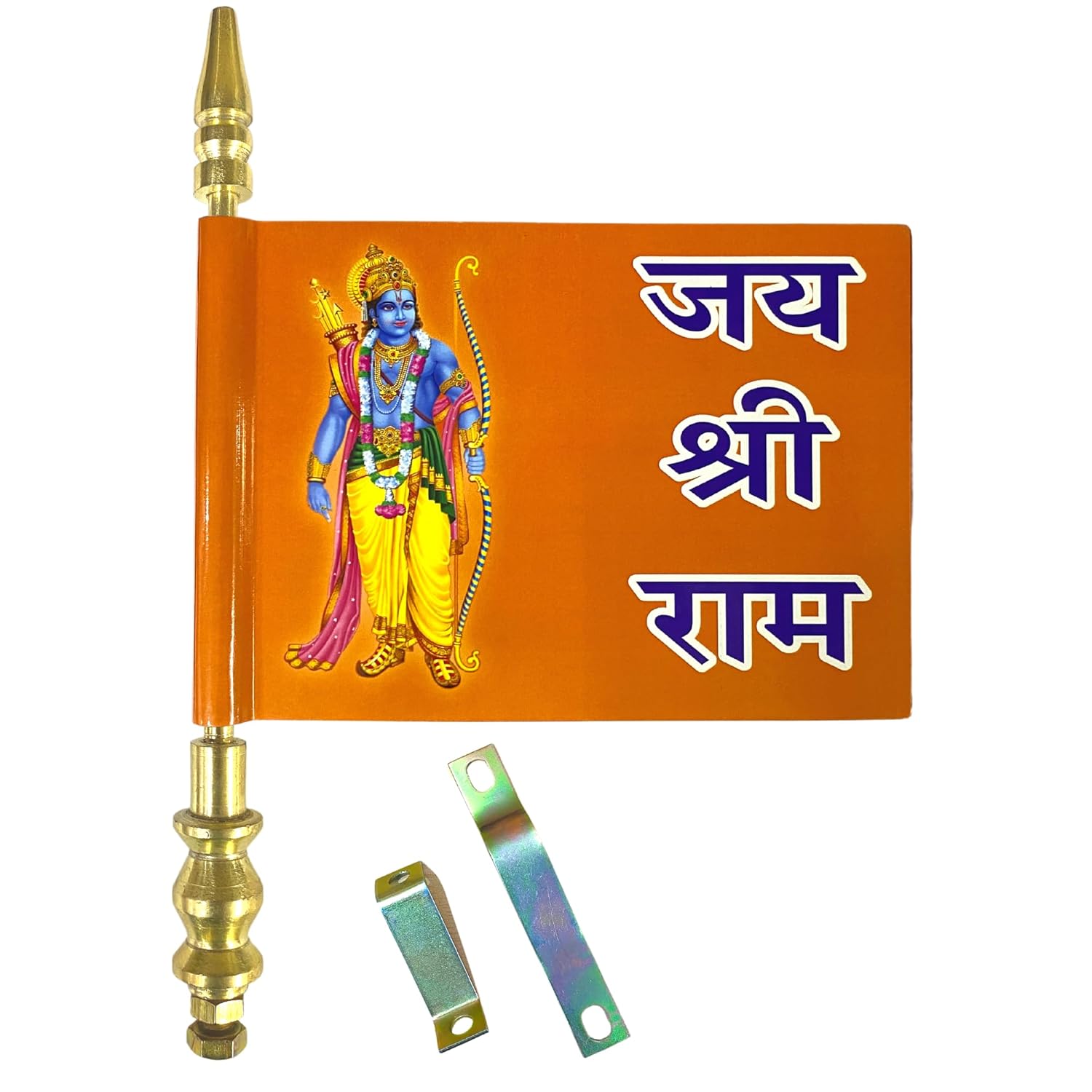 Jai Shree Ram Ayodhya Car Bonnet Flag – Orange | Premium Religious Flag